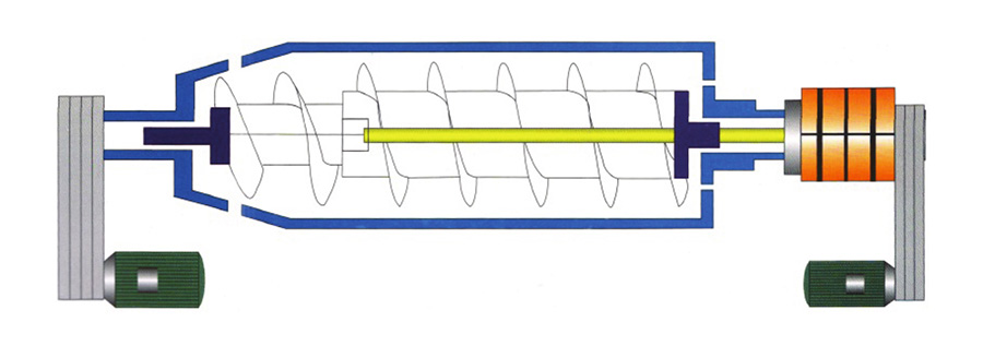 主要有兩種差速器,行星差速器與擺線差速器,通過差速器來完成轉(zhuǎn)豉和螺旋之間保持恒定的差轉(zhuǎn)速,以便分離后的固體物穩(wěn)定的推出排渣口。用變頻控制,跟據(jù)物料情況,不同比重不同含固率調(diào)整差速器差轉(zhuǎn)速,達(dá)到較好的推泥效果和分離效果。